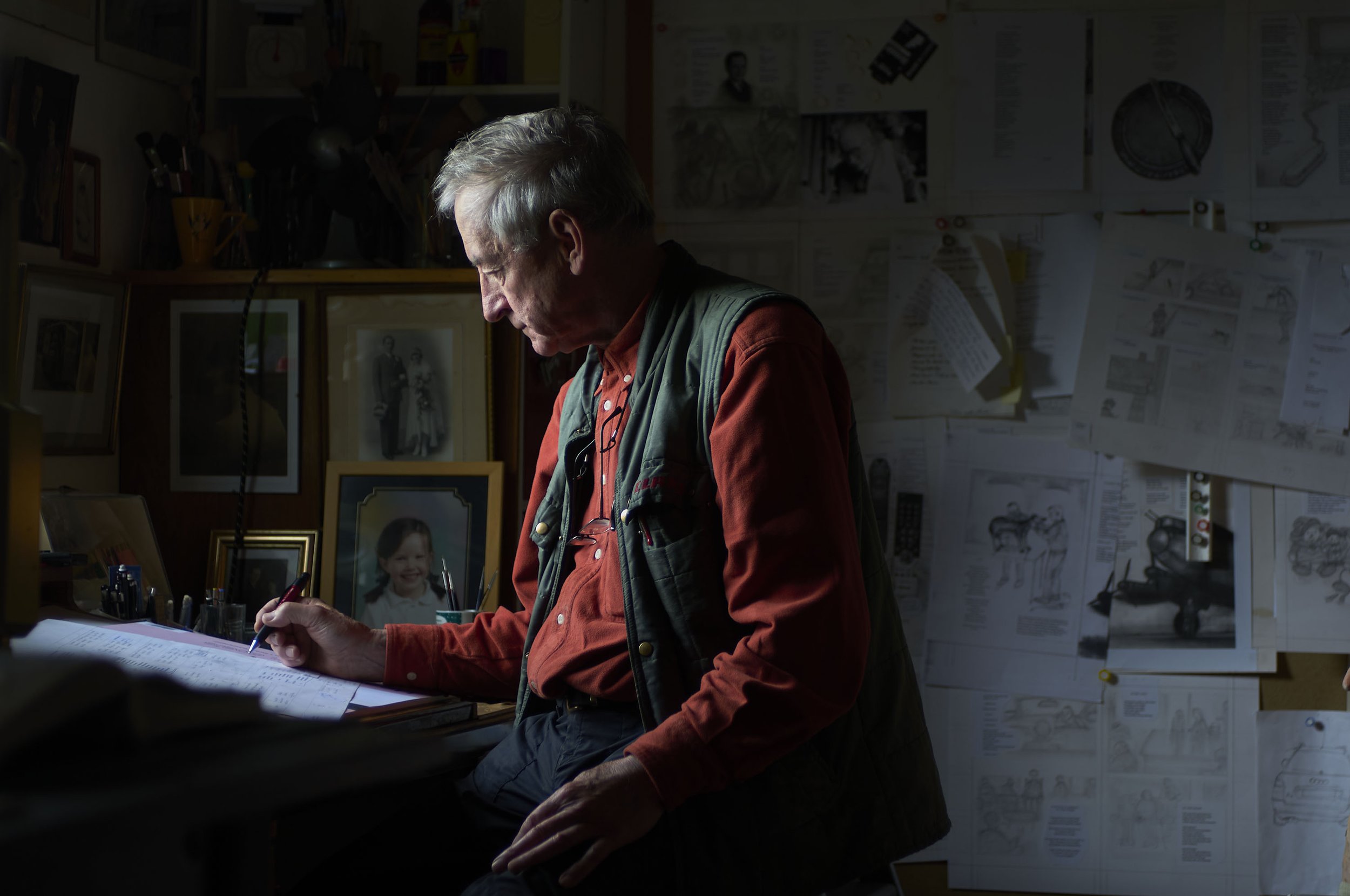 Raymond Briggs at hone in his studio, West Sussex. 2009